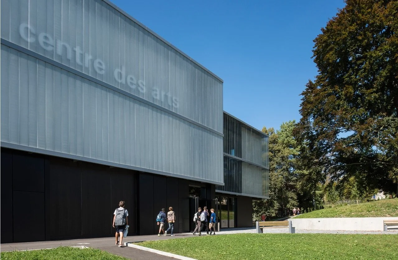 “Le Centre des Arts sera un repère architectural majeur”, indique le site de l’architecte du projet Jean-Michel Wilmotte. Six ans plus tard, le pari est toujours tenu. Il le sera encore pour de nombreuses années avec ses lignes claires et épurées. L’architecte a voulu que cette dernière opportunité de construire sur le site historique de La Grande Boissière soit le point d’orgue de pratiquement un siècle d’existence de l’École Internationale de Genève. Implanté à la croisée du sport et de la culture, entre le "théâtre grec" des années 1950 et le gymnase, au cœur de la forêt, le Centre des Arts unifie l’ensemble du campus. Le Centre des Arts représente l’avenir de l’école et en exprime la plus belle des vitrines. Transparence, légèreté, convivialité et nature ont guidé la conception de cette architecture, métaphore de la créativité et de l’esprit d’innovation des futurs élèves.”