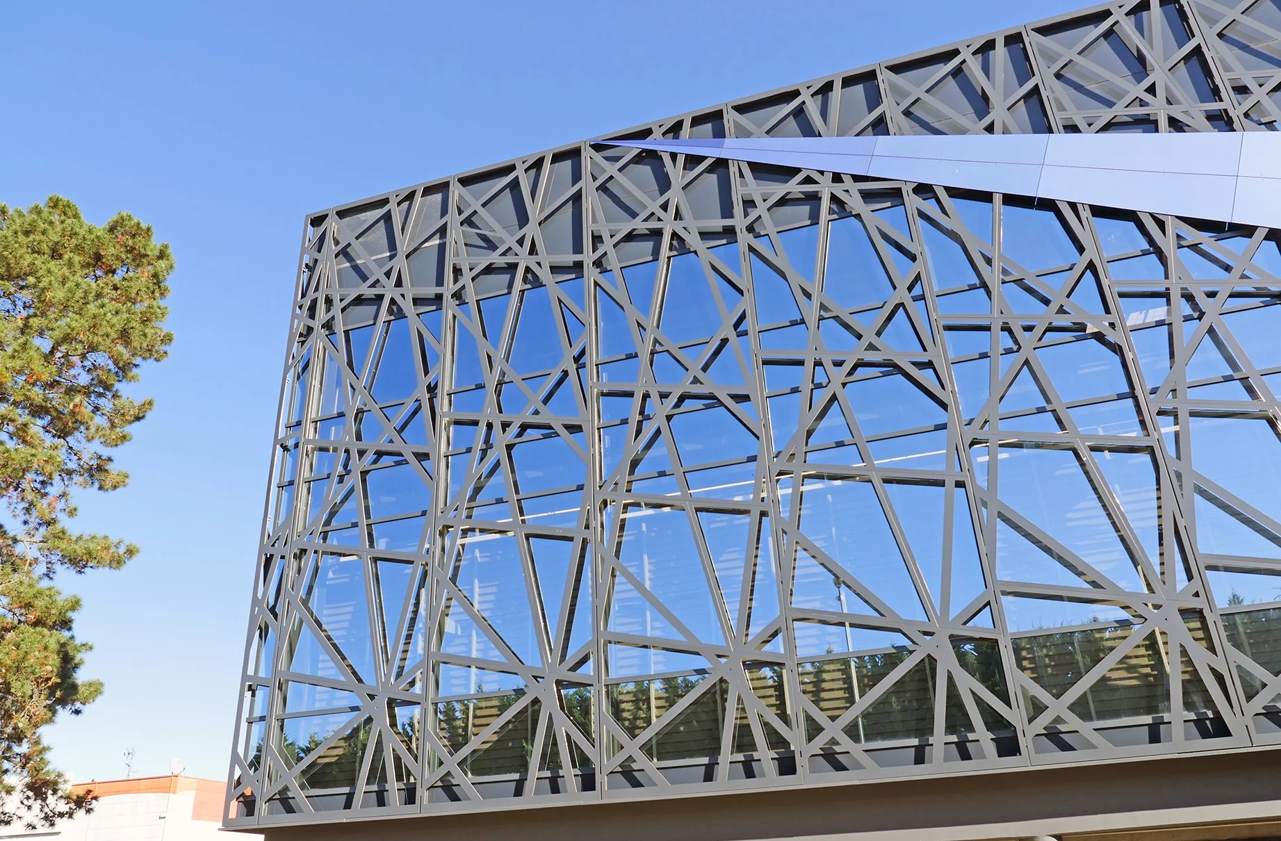 Façade Intersport Bayonne réalisée par Ferralu Côte Basque avec les vitrages Stopsol Supersilver fournis par Glass Partners Solutions