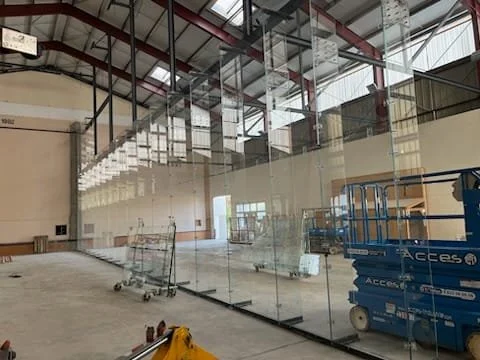 Pose des grands vitrages au trinquet Iholdy